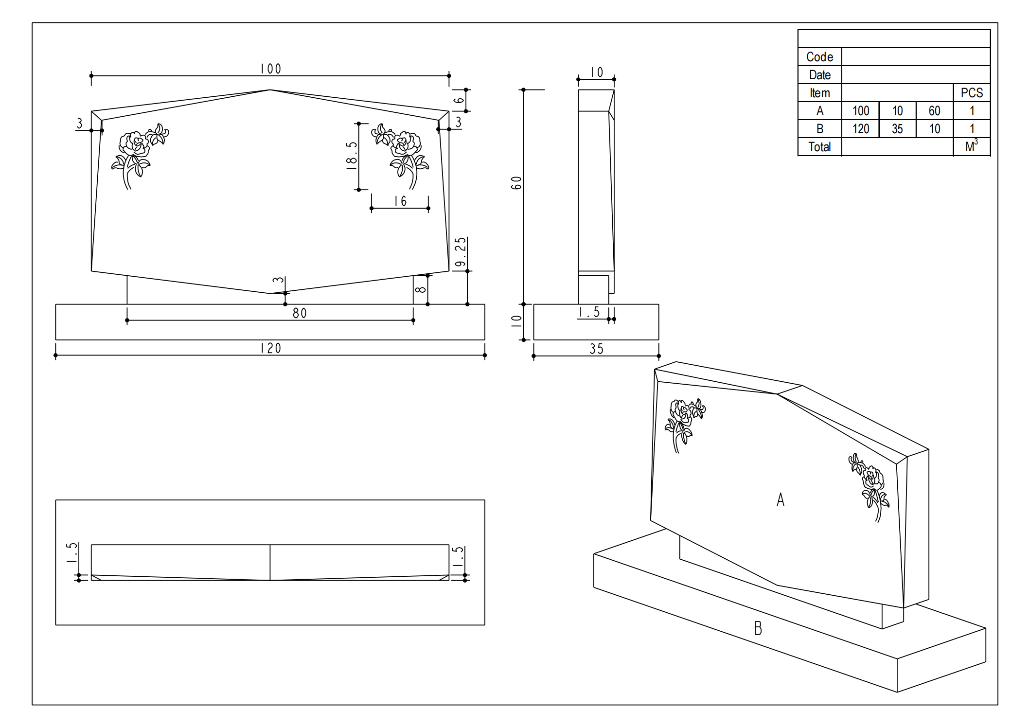 Довжина надгробка: 100 см Ширина надгробка: 60 см Основа: 120 см Загальна висота: 70 см Або за бажанням покупця |