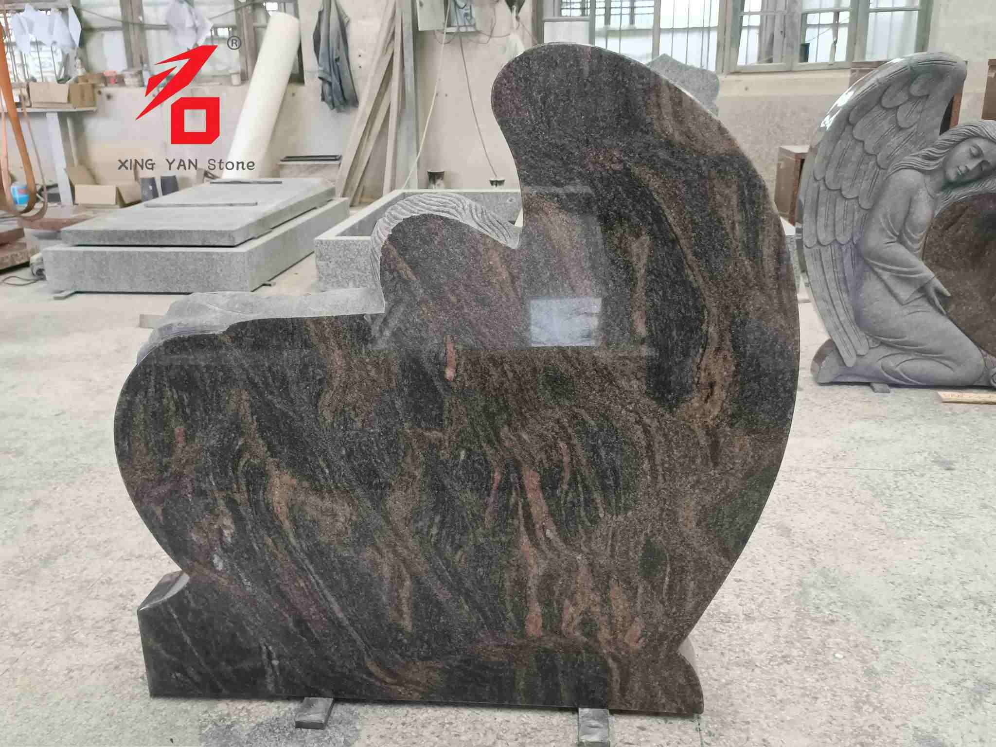 Меморіальний надгробний пам'ятник Ангелу у формі серця з синього перламутрового граніту