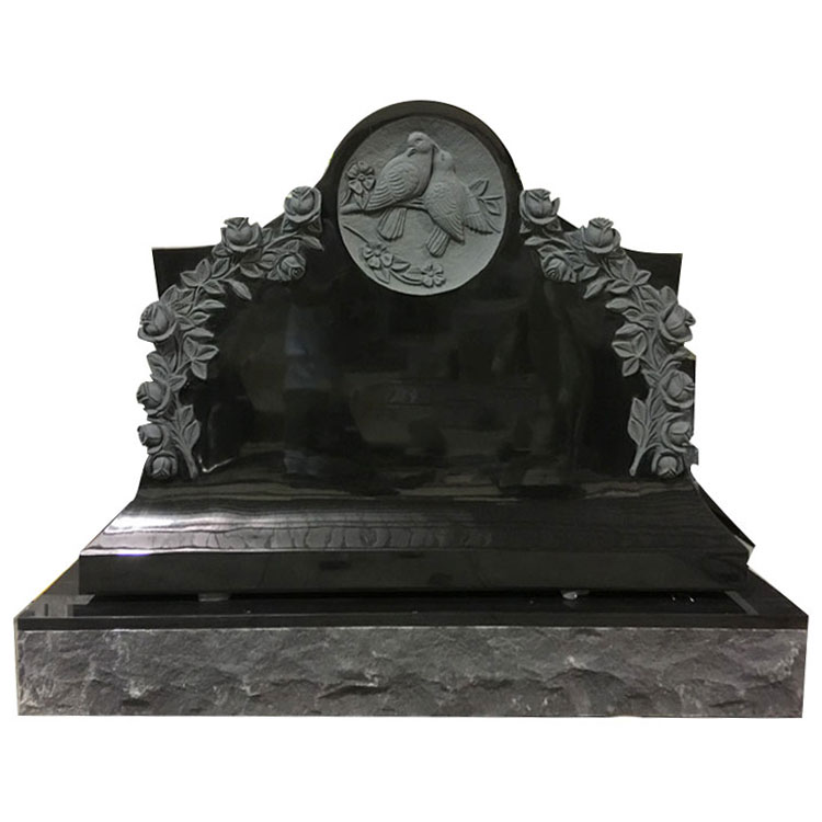 Чорний гранітний квітковий надгробний камінь пам’ятник TATBS-020