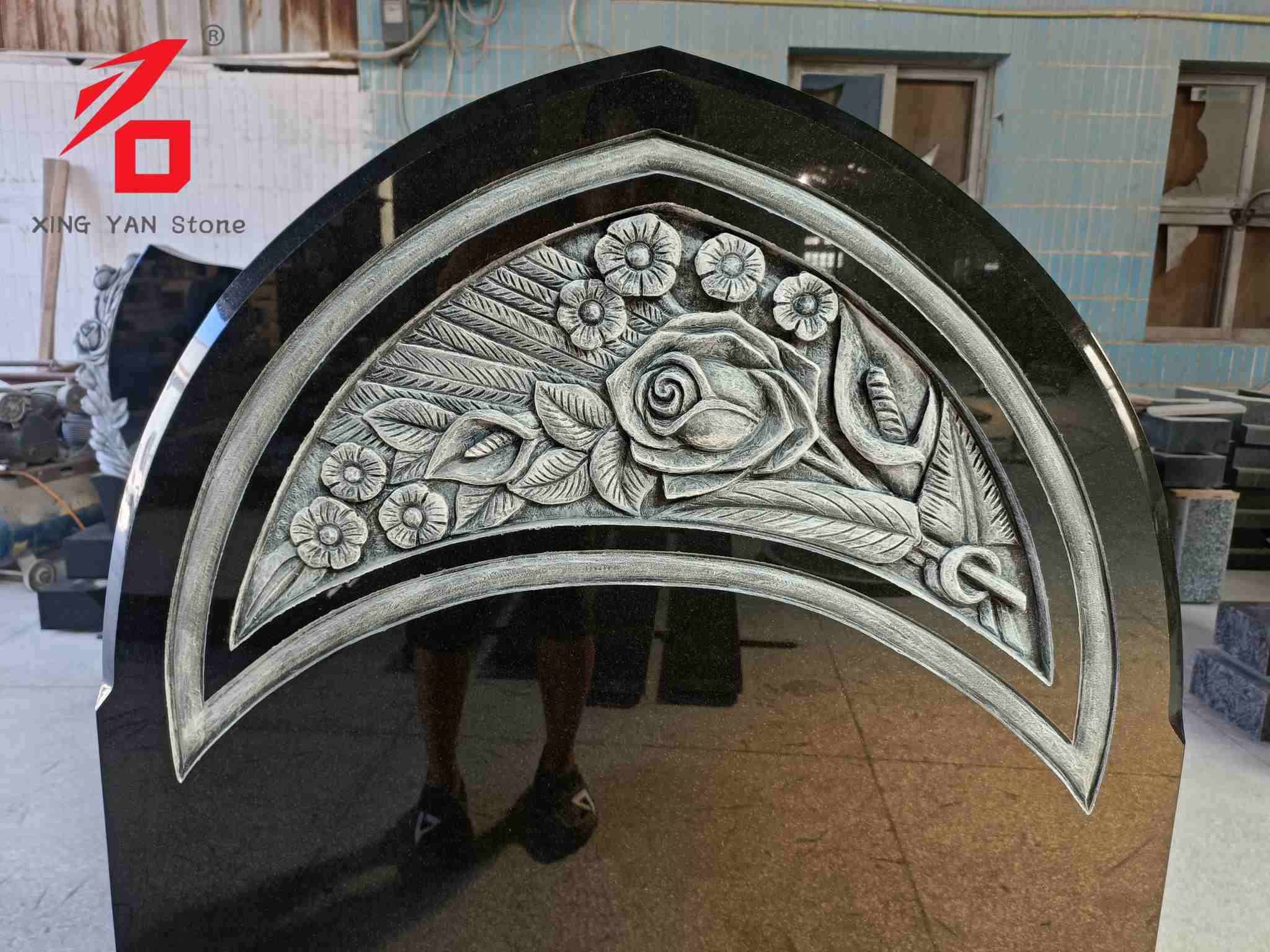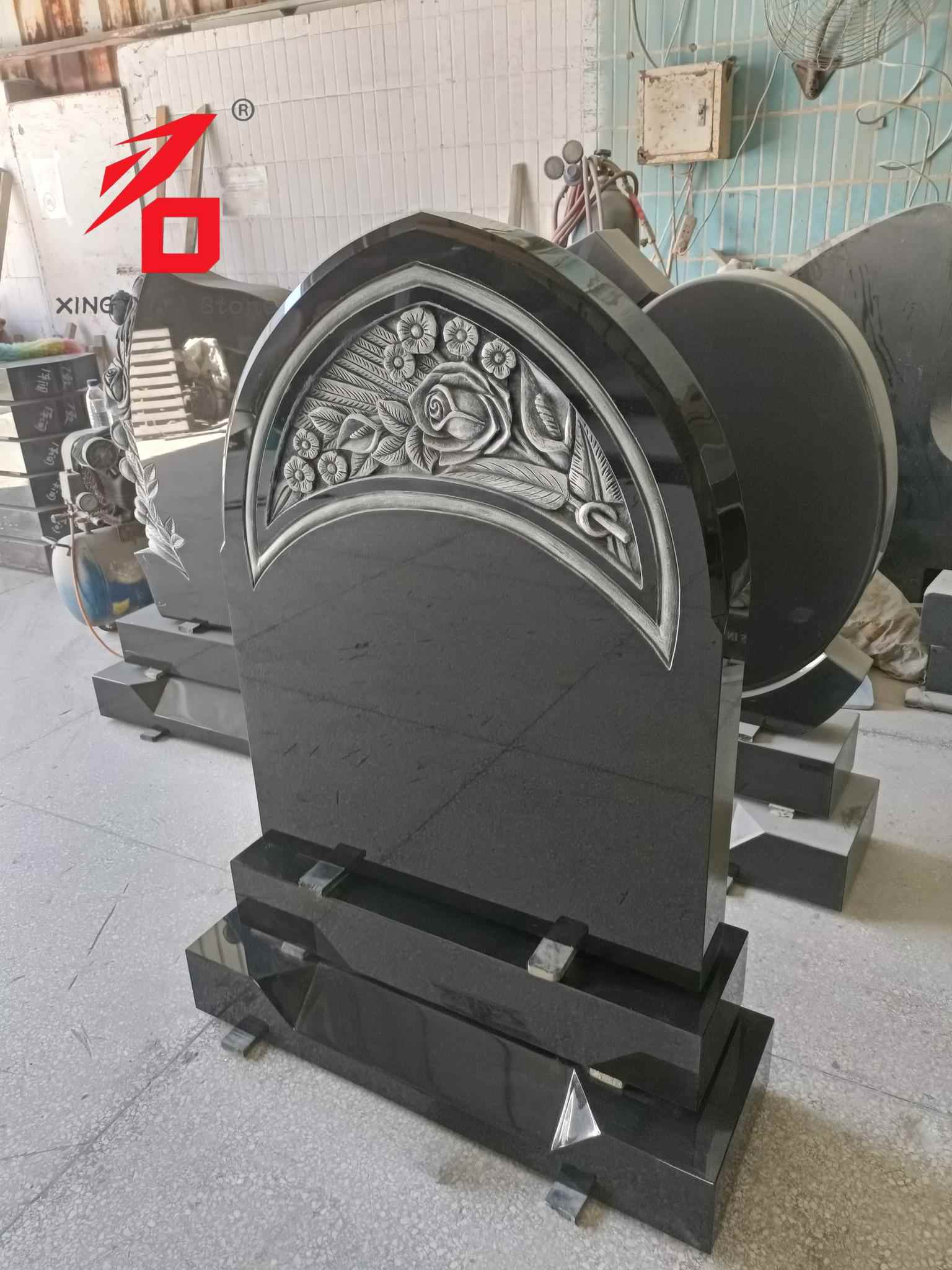 Стиль дизайну: вигнута форма в поєднанні з рельєфними елементами троянди передає пам’ятне значення, яке поєднує в собі ніжність і урочистість, підходить для вираження глибокої пам’яті про померлого.